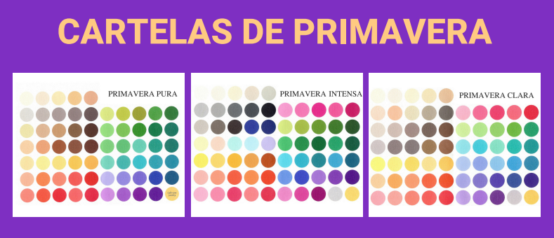Existem 3 cartelas de primavera: pura ou quente, primavera intensa e primavera clara. Observe: